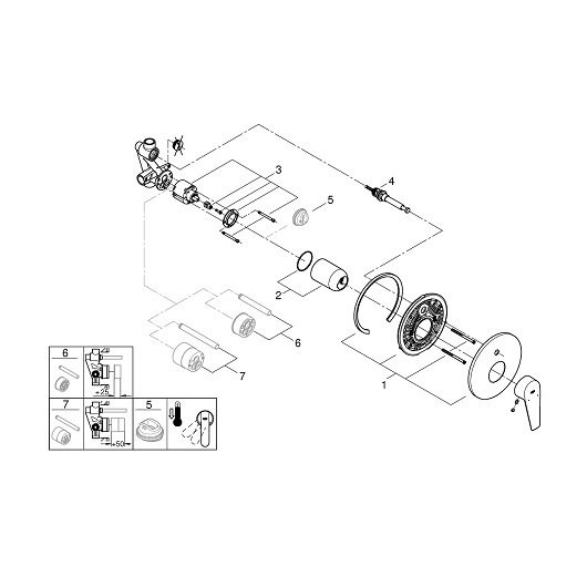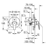 29079001 BauEdge Смеситель для ванны (внешняя и встраиваемая части), хром (замена 29079000)
