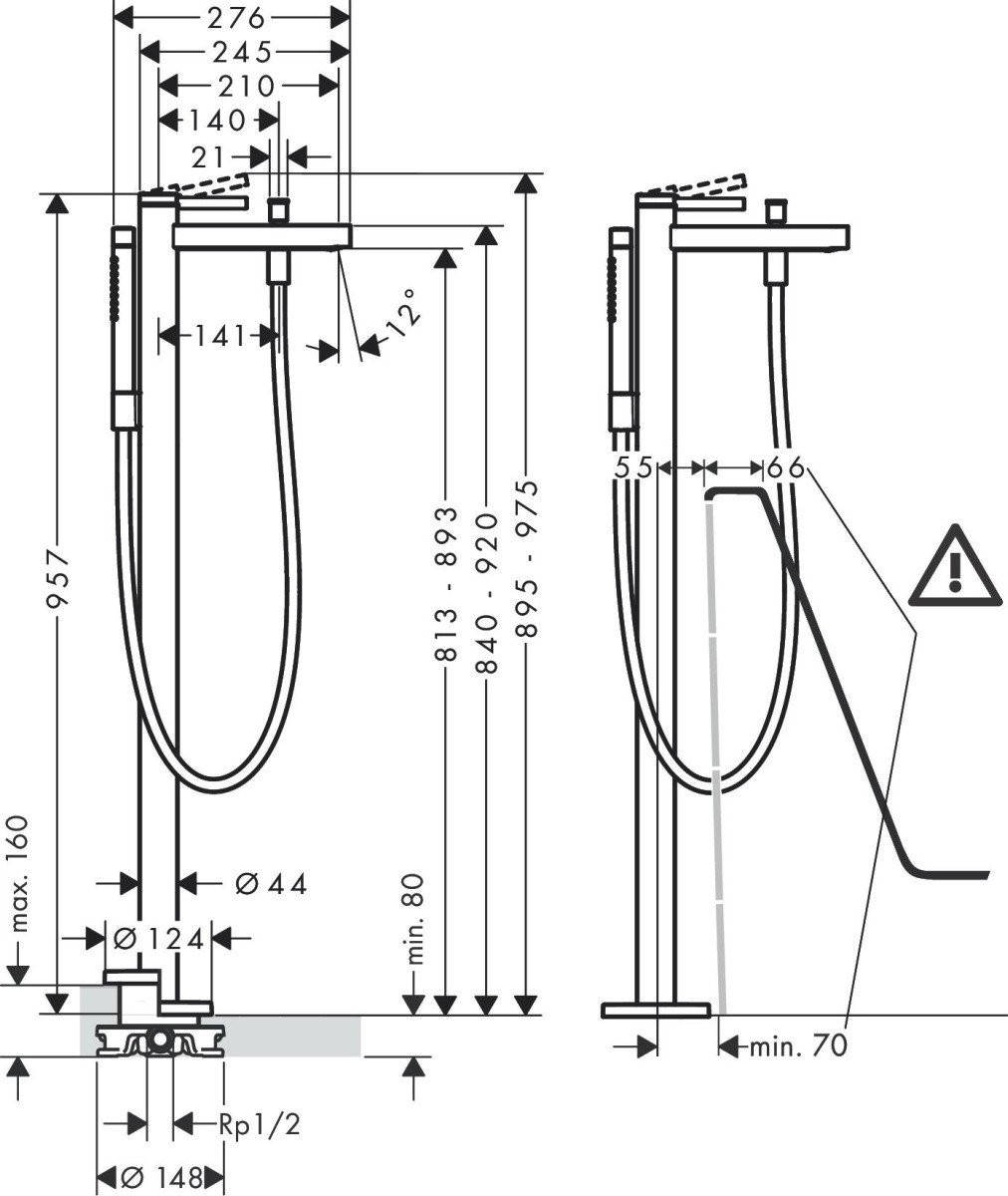 76445700S Set HG Finoris напольный смеситель для ванны (76445700+10452180), матовый белый