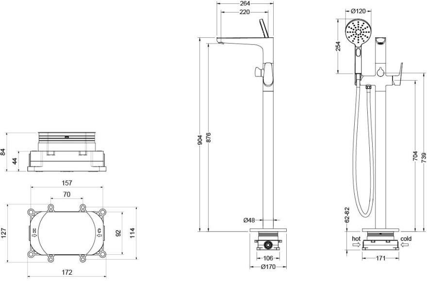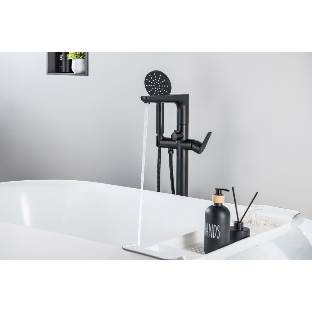 AQ1145MB БЕТТА смеситель для ванны напольный (внешняя и скрытая часть), матовый черный
