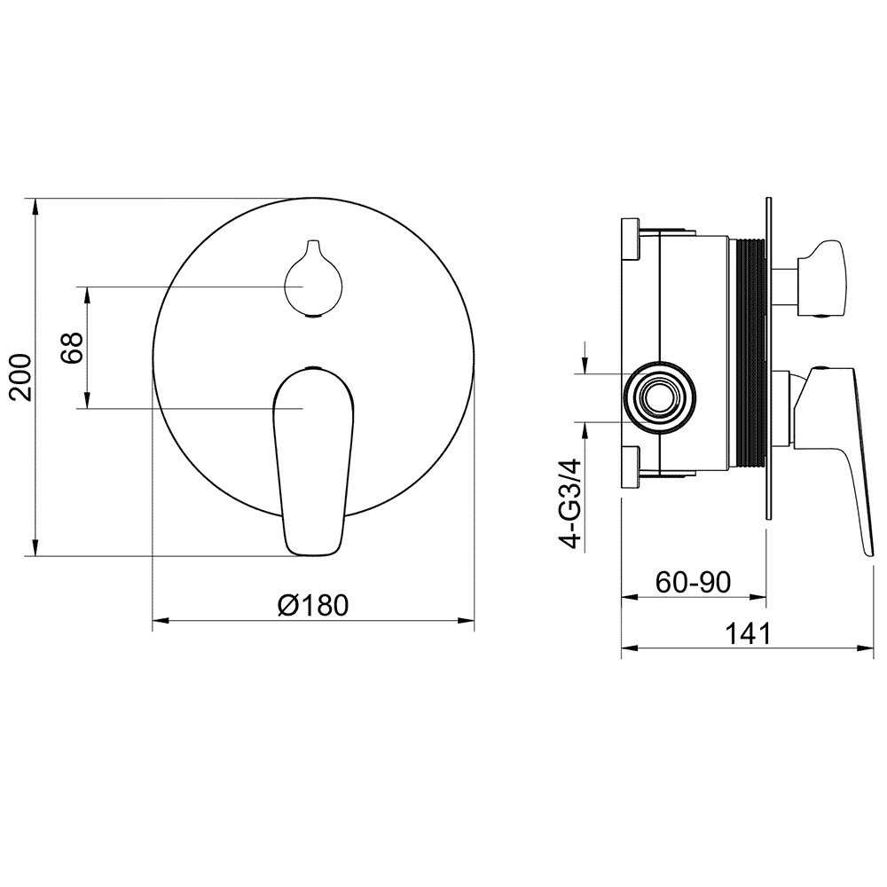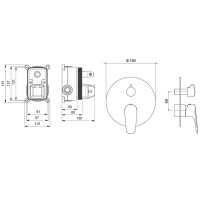 AQ1146BGM БЕТТА смеситель для ванны 2 режима (внешняя и скрытая часть), оружейная сталь (шлиф. черный хром)