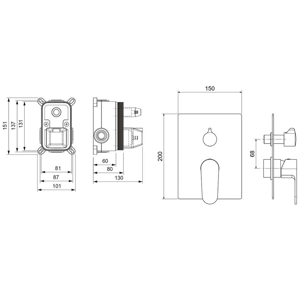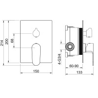 AQ1246BG ОБЕРОН смеситель для ванны 2 режима (внешняя и скрытая часть), шлиф. золото