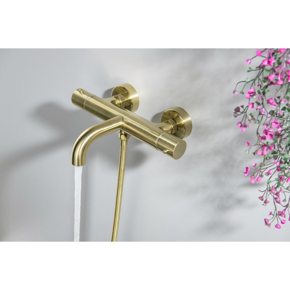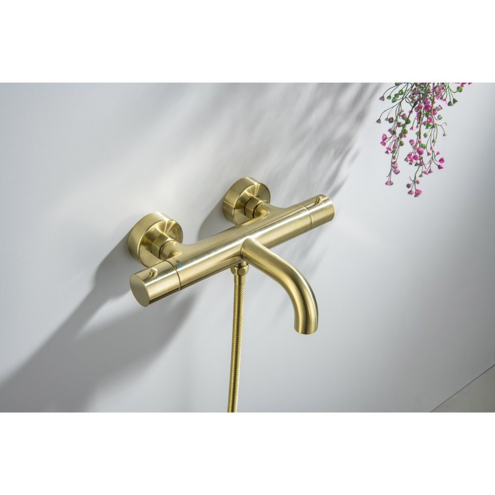 AQ1343BG ЕВРОПА термостатический смеситель для ванны, шлиф. золото