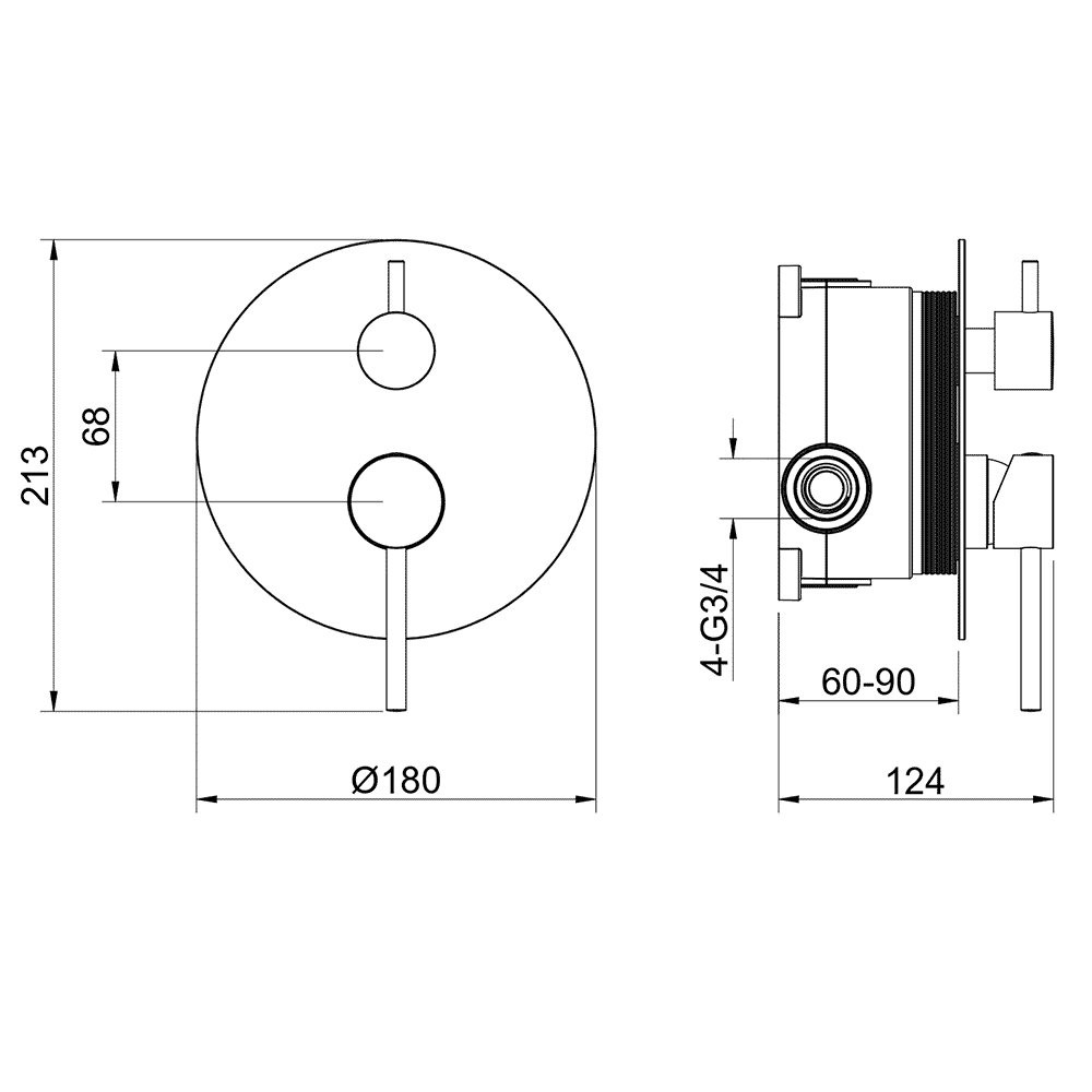 AQ1346BGM ЕВРОПА смеситель для ванны 2 режима (внешняя и скрытая часть), оружейная сталь (шлиф. черный хром)