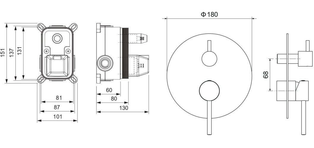 AQ1346MB ЕВРОПА смеситель для ванны 2 режима (внешняя и скрытая часть), матовый черный