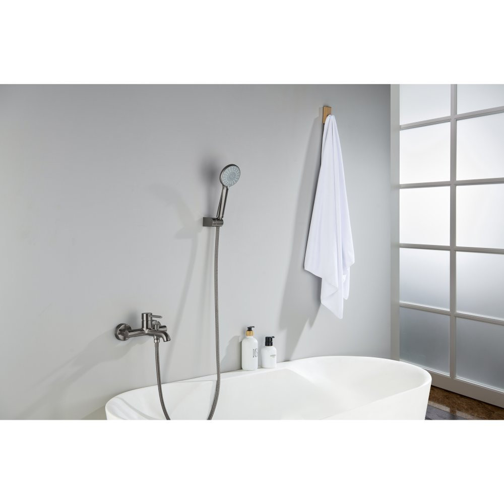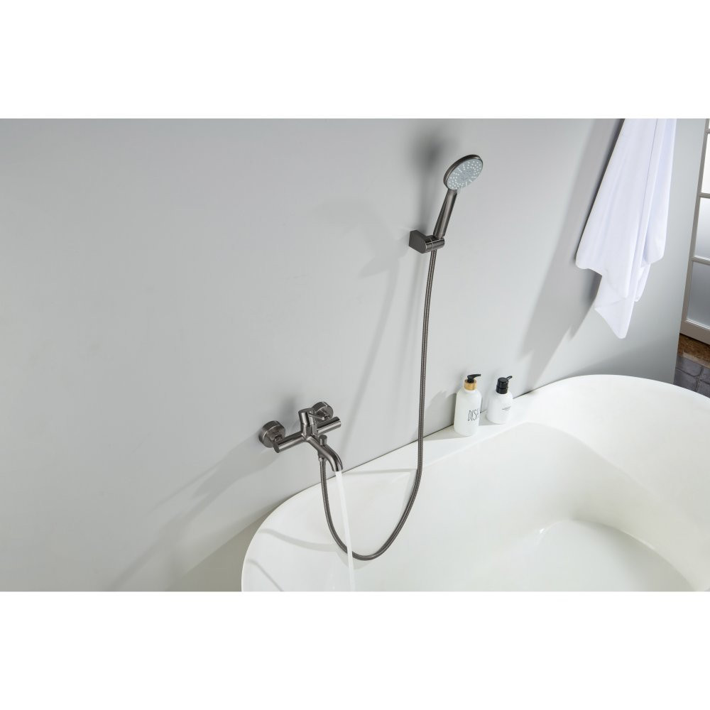 AQ1349BGM ЕВРОПА смеситель для ванны с душевым набором 3jet, оружейная сталь (шлиф. черный хром)