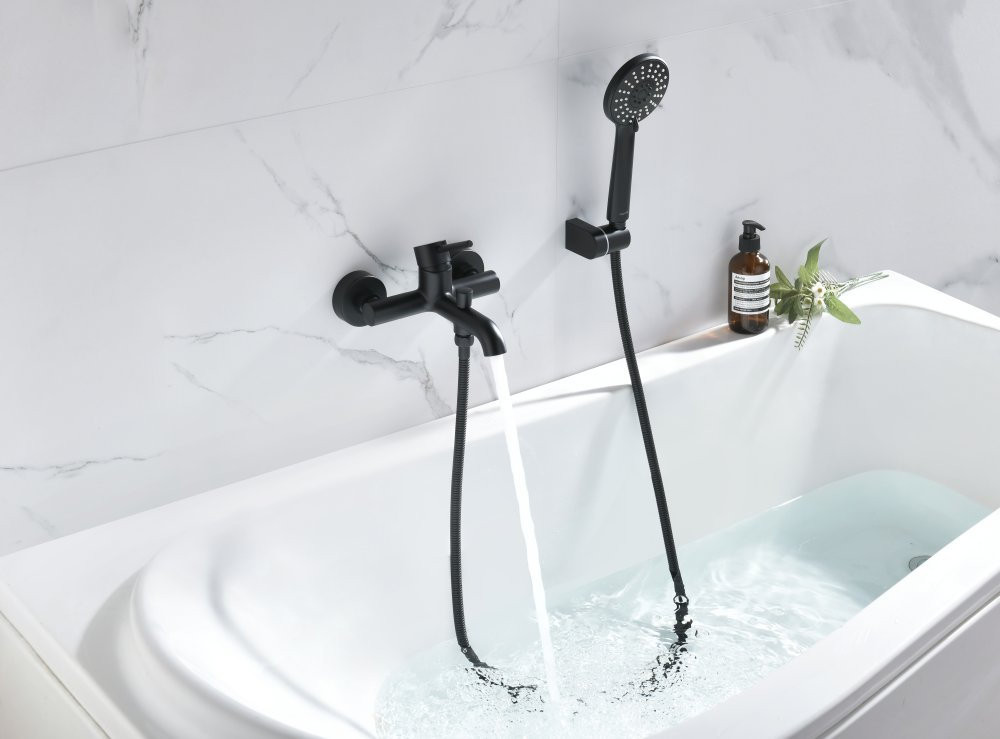 AQ1349MB ЕВРОПА смеситель для ванны с душевым набором 3jet, матовый черный