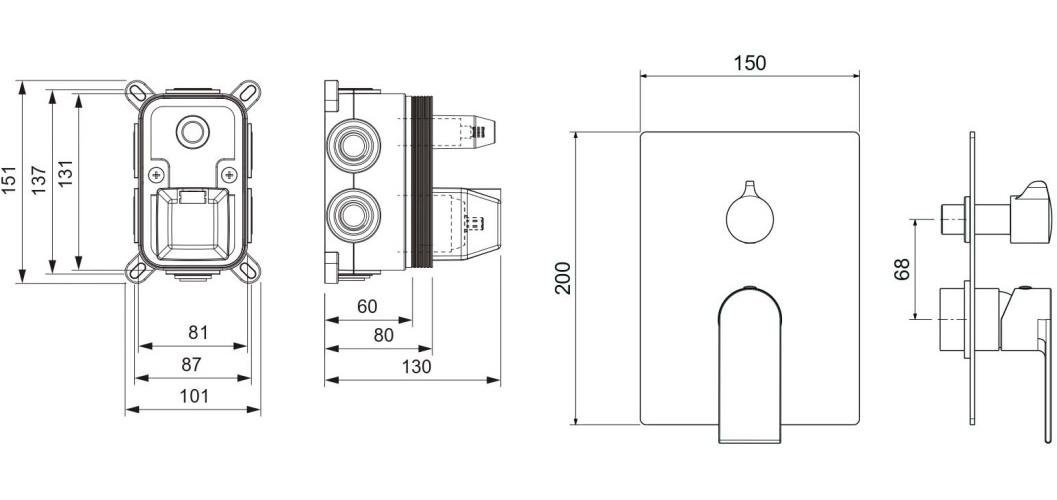 AQ1447MB ЛИРА смеситель для ванны 3 режима (внешняя и скрытая часть), матовый черный