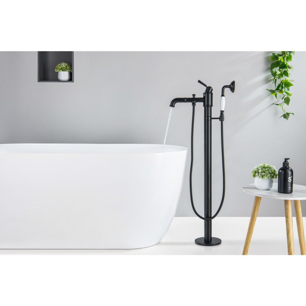 AQ1545MB КЛАССИК смеситель для ванны напольный (внешняя и скрытая часть), матовый черный