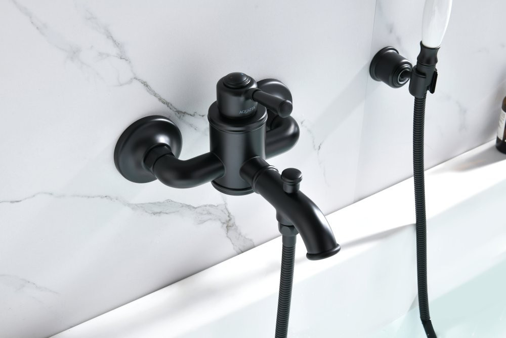 AQ1549MB КЛАССИК смеситель для ванны с душевым набором, матовый черный