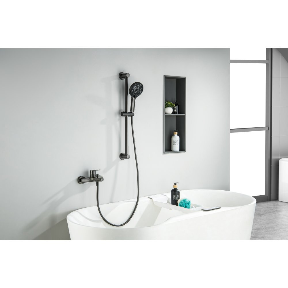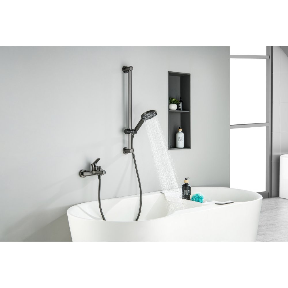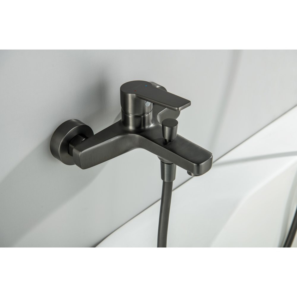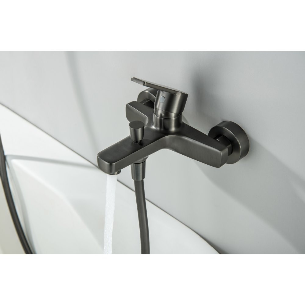 AQ1748BGM ЛУГАНО смеситель для ванны с душевым гарнитуром 3jet, оружейная сталь (шлиф. черный хром)