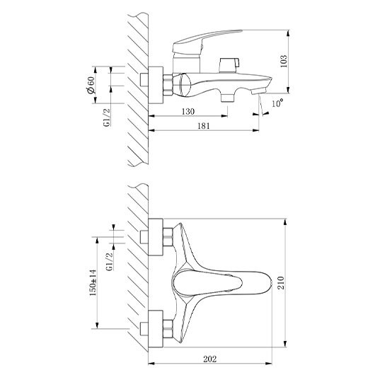 LM0414C "LINARA" Смеситель для ванны, с коротким изливом, дивертор с керамическими пластинами