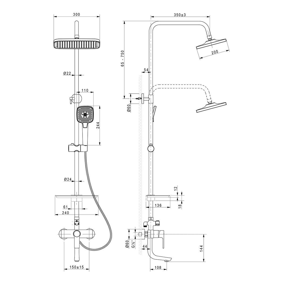 LM0662CH "AURA" Смеситель для ванны с верхней душевой лейкой "Тропический дождь", с поворотным изливом 131мм