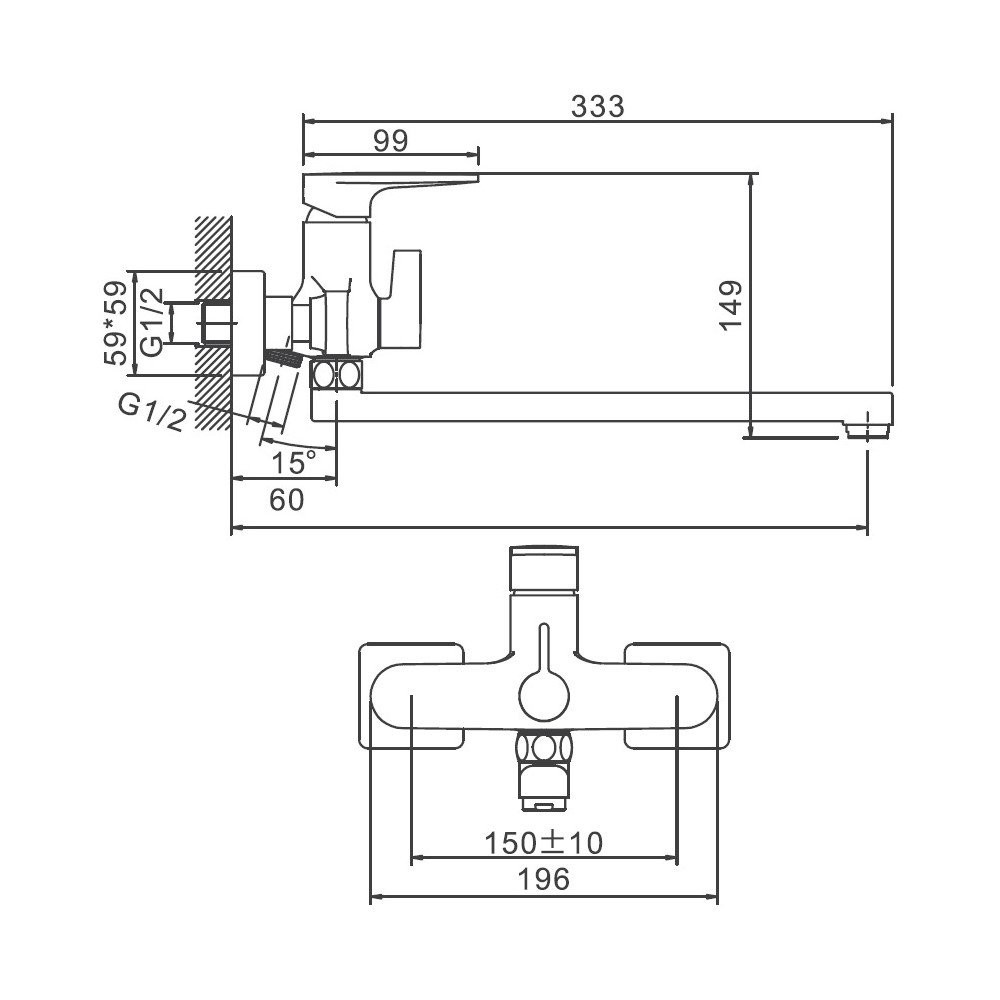Длинный поворотный излив, оснащённый аэратором, позволяет удобно наполнять ванну и способствует экономии воды, делая струю мягче и равномернее. Классический настенный монтаж через эксцентрики с межосевым расстоянием 150 мм обеспечивает простоту установки. В комплекте с смесителем идёт трёхрежимная душевая лейка из ABS-пластика, которая предлагает разнообразные варианты водных процедур, и душевой шланг в двойной металлической оплётке длиной 150 см, что гарантирует его надёжность и долговечность.