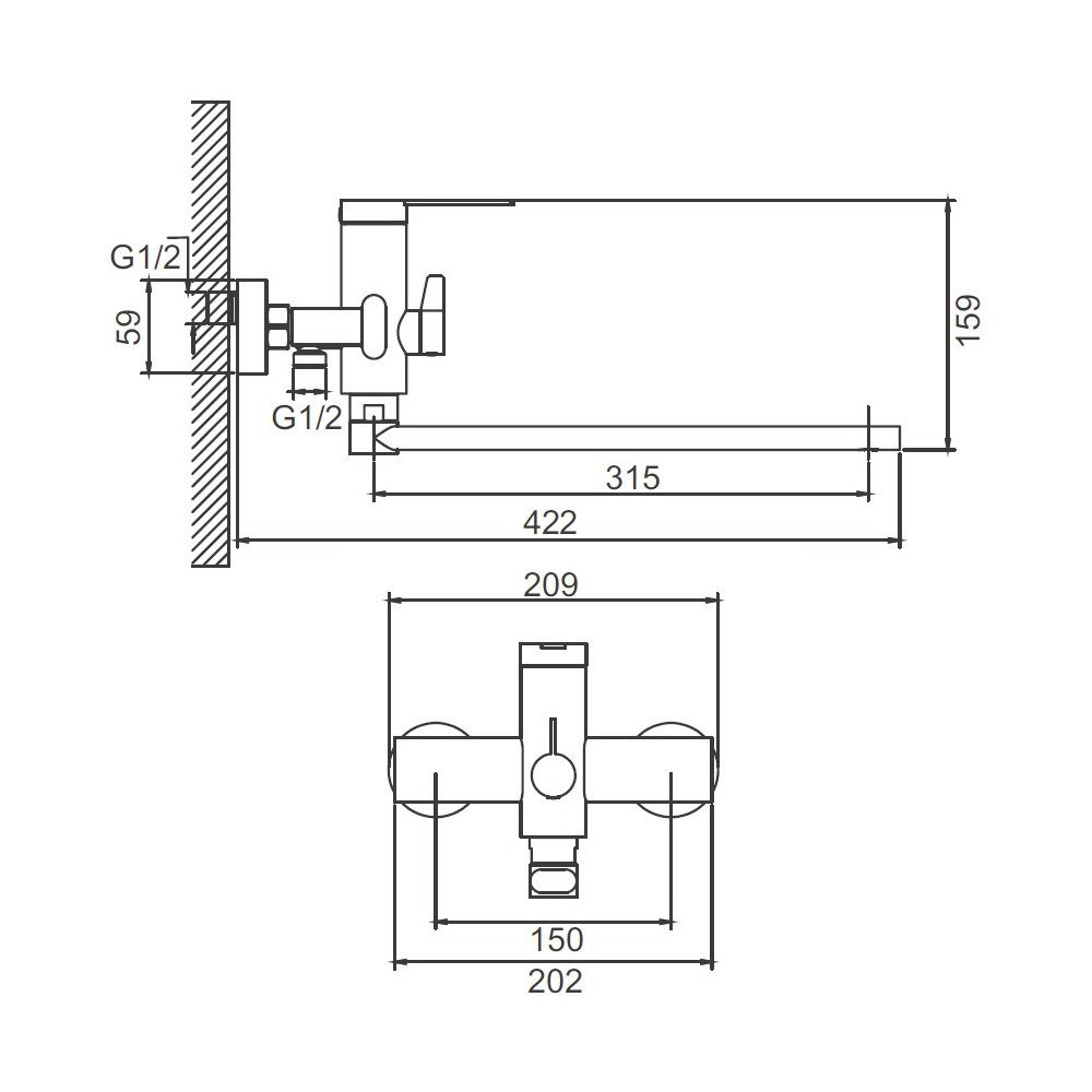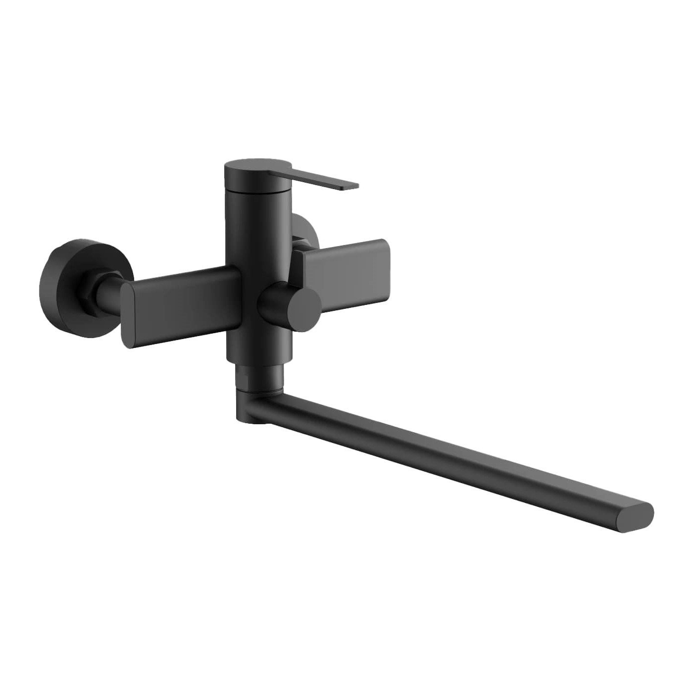 Длинный поворотный излив, оснащённый аэратором, позволяет удобно наполнять ванну и способствует экономии воды, делая струю мягче и равномернее. Классический настенный монтаж через эксцентрики с межосевым расстоянием 150 мм обеспечивает простоту установки. В комплекте с смесителем идёт трёхрежимная душевая лейка из ABS-пластика, которая предлагает разнообразные варианты водных процедур, и душевой шланг в двойной металлической оплётке длиной 150 см, что гарантирует его надёжность и долговечность.