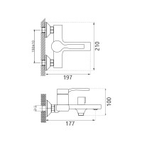 Комплектация: смеситель, лейка, держатель лейки, шланг;