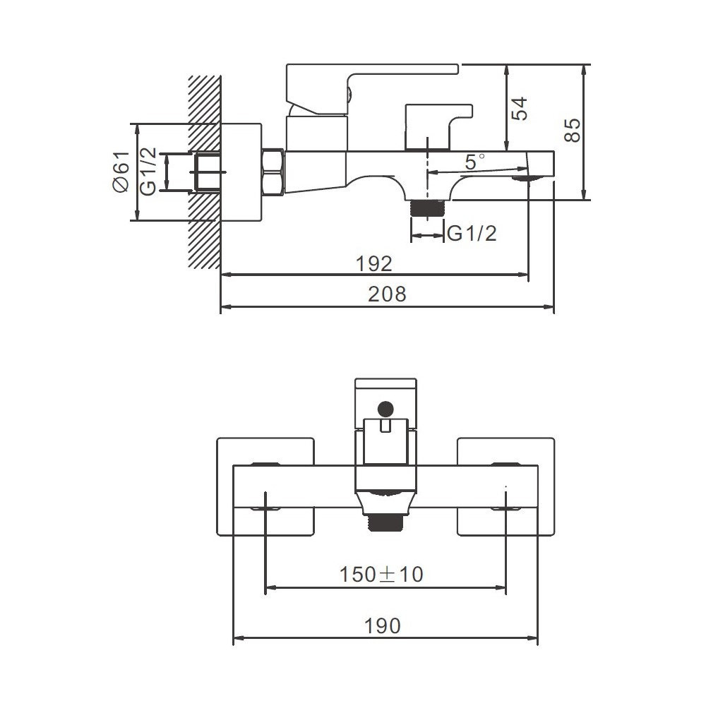 Фиксированный излив смесителя оснащён аэратором, который делает струю воды мягче и способствует экономии воды. Классический настенный монтаж через эксцентрики с межосевым расстоянием 150 мм позволяет легко установить смеситель. В комплекте идёт трёхрежимная душевая лейка из ABS-пластика, которая предлагает различные варианты водных процедур, и душевой шланг в двойной металлической оплётке длиной 150 см, обеспечивающий удобство и надёжность использования.