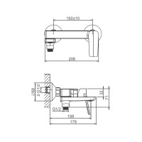 Особенностью смесителя является поворотный излив с аэратором, который в сложенном виде служит переключателем воды на ручной душ. Это не только удобно, но и позволяет экономить пространство. Классический настенный монтаж через эксцентрики с межосевым расстоянием 150 мм обеспечивает простоту установки. В комплекте с смесителем идёт трёхрежимная душевая лейка из ABS-пластика, которая предлагает различные варианты водных процедур, и душевой шланг в двойной металлической оплётке длиной 150 см, что гарантирует его прочность и долговечность.