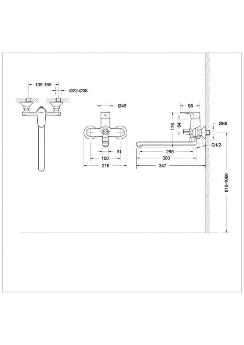 Смеситель для ванны Bravat Alfa F6120178CP-01L, хром. Душевой гарнитур в комплекте: нет. Управление: рычажное. Монтаж: настенный.