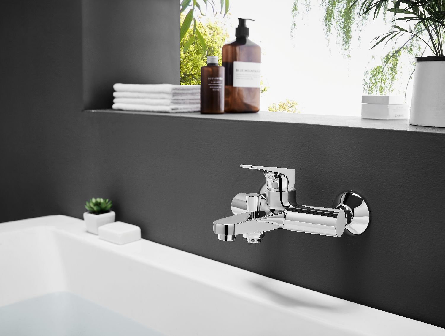 Смеситель для ванны Bravat Eler F6191238CP-01-RUS, хром. Душевой гарнитур в комплекте: нет. Управление: рычажное. Монтаж: настенный.