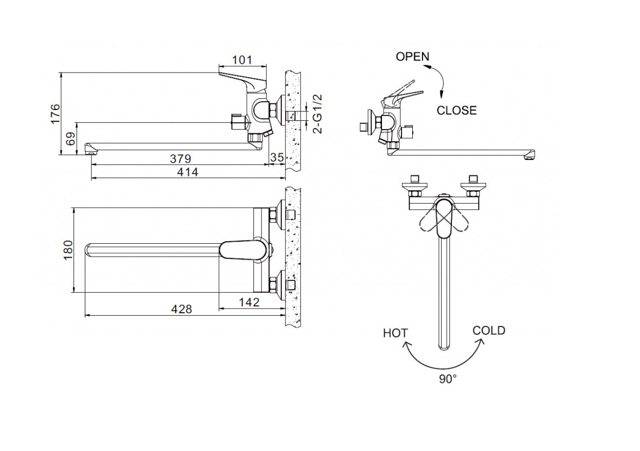 Смеситель для ванны Bravat Eler F6191238CP-01L-RUS, хром. Душевой гарнитур в комплекте: нет. Управление: рычажное. Монтаж: настенный.
