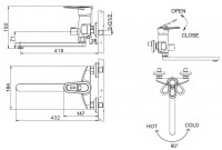Смеситель для ванны Bravat LOOP F6124182CP-02L-RUS, хром. Душевой гарнитур в комплекте: нет. Управление: рычажное. Монтаж: настенный.