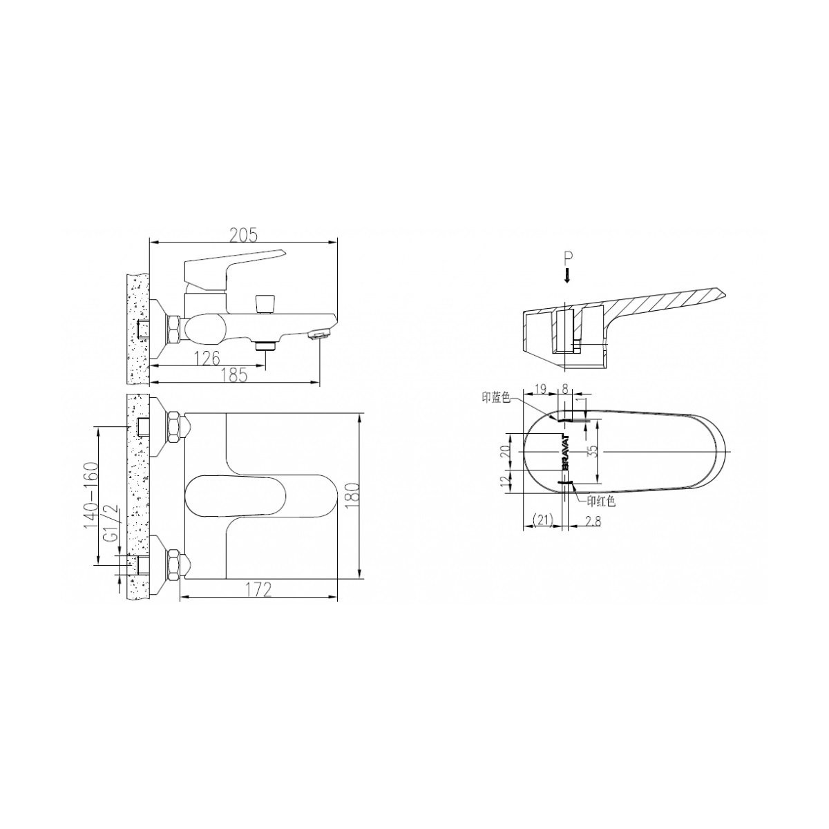 Смеситель для ванны Bravat Pure F6105161C-01, хром. Душевой гарнитур в комплекте: нет. Управление: рычажное. Монтаж: настенный.