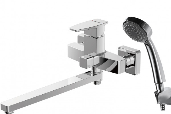 Смеситель для ванны Bravat Riffle с длинным изливом и душевой лейкой, хром (F672106C-LB)