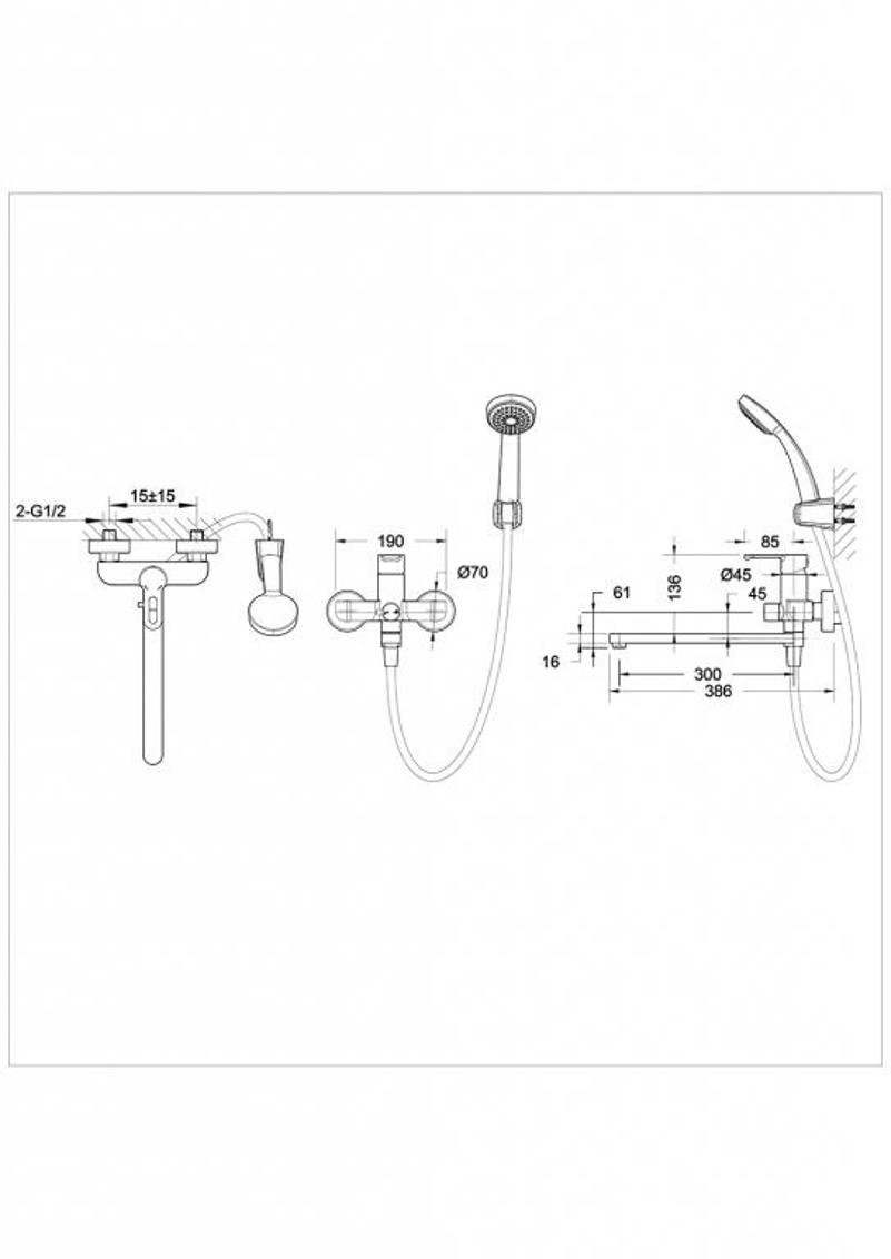 Комплектация: смеситель, лейка, шланг, держатель лейки, эксцентрики, декоративные чашки;