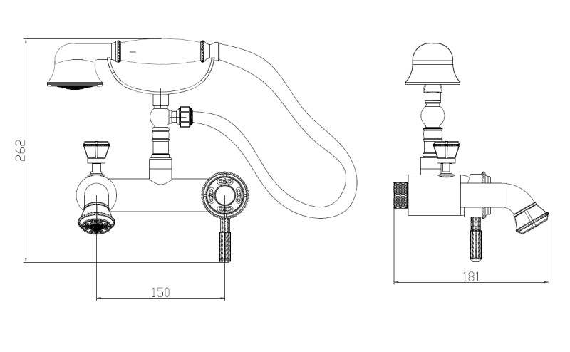 Комплектация: Смеситель, шланг, душевая лейка, эксцентрики, декоративные чашки;
