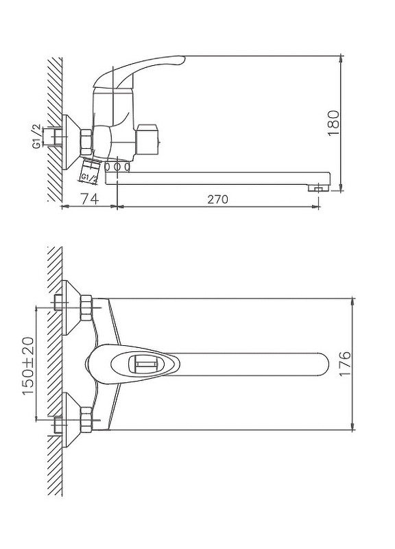 Керамический картридж 40 мм. Смеситель изготовлен из металлического сплава. Вращение излива на 180°. Переключатель потоков на корпусе смесителя. Диаметр декоративных чашек 70 мм. Душевой гарнитур в комплекте. Межосевое расстояние (расстояние между выходом горячей и холодной трубы) 150 мм. Данное расстояние изменяется за счет входящих в комплект эксцентриков на 20 мм. в большую или меньшую стороны.Цвет хром.