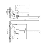 Керамический картридж 35 мм. Смеситель изготовлен из металлического сплава. Переключатель потоков на корпусе смесителя. Диаметр декоративных чашек 70 мм. Душевой гарнитур в комплекте. Межосевое расстояние (расстояние между выходом горячей и холодной трубы) 150 мм. Данное расстояние изменяется за счет входящих в комплект эксцентриков на 15 мм. в большую или меньшую стороны. Цвет хром