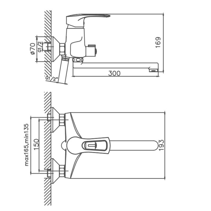 Керамический картридж 40 мм. Смеситель изготовлен из металлического сплава. Переключатель потоков на корпусе смесителя. Диаметр декоративных чашек 70 мм. Душевой гарнитур в комплекте. Межосевое расстояние (расстояние между выходом горячей и холодной трубы) 150 мм. Данное расстояние изменяется за счет входящих в комплект эксцентриков на 15 мм. в большую или меньшую стороны. Цвет хром