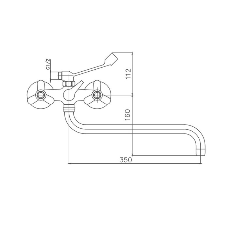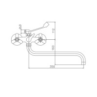 Смеситель изготовлен из металлического сплава. Переключатель потоков на корпусе смесителя. Держатель лейки на корпусе смесителя. Диаметр декоративных чашек 70 мм. Душевой гарнитур в комплекте. Межосевое расстояние (расстояние между выходом горячей и холодной трубы) 150 мм. Данное расстояние изменяется за счет входящих в комплект эксцентриков на 15 мм. в большую или меньшую стороны. Цвет хром