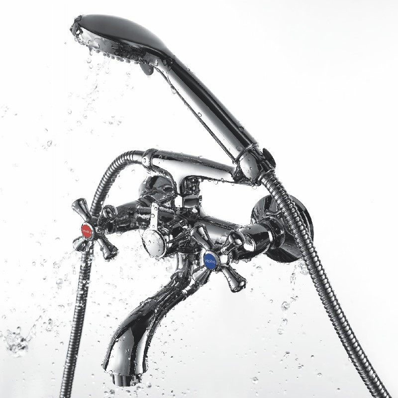 Комплектация: Смеситель, шланг, душевая лейка, держатель душевой лейки, эксцентрики, инструкция;