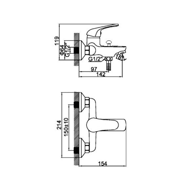 Комплектация: Смеситель, шланг, душевая лейка, держатель душевой лейки, эксцентрики, инструкция;