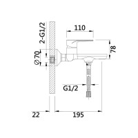 Комплектация: Смеситель, шланг, душевая лейка, держатель душевой лейки, эксцентрики, инструкция;