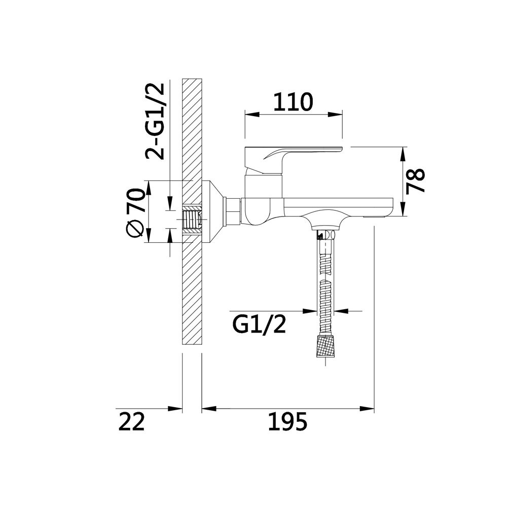 Комплектация: Смеситель, шланг, душевая лейка, держатель душевой лейки, эксцентрики, инструкция;