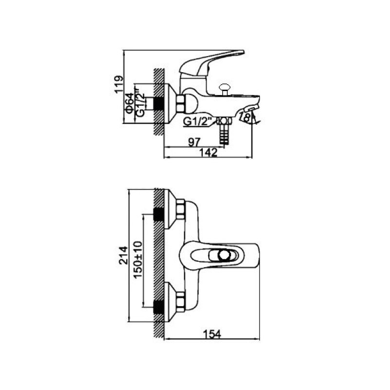 Комплектация: Смеситель, шланг, душевая лейка, держатель душевой лейки, эксцентрики, инструкция;