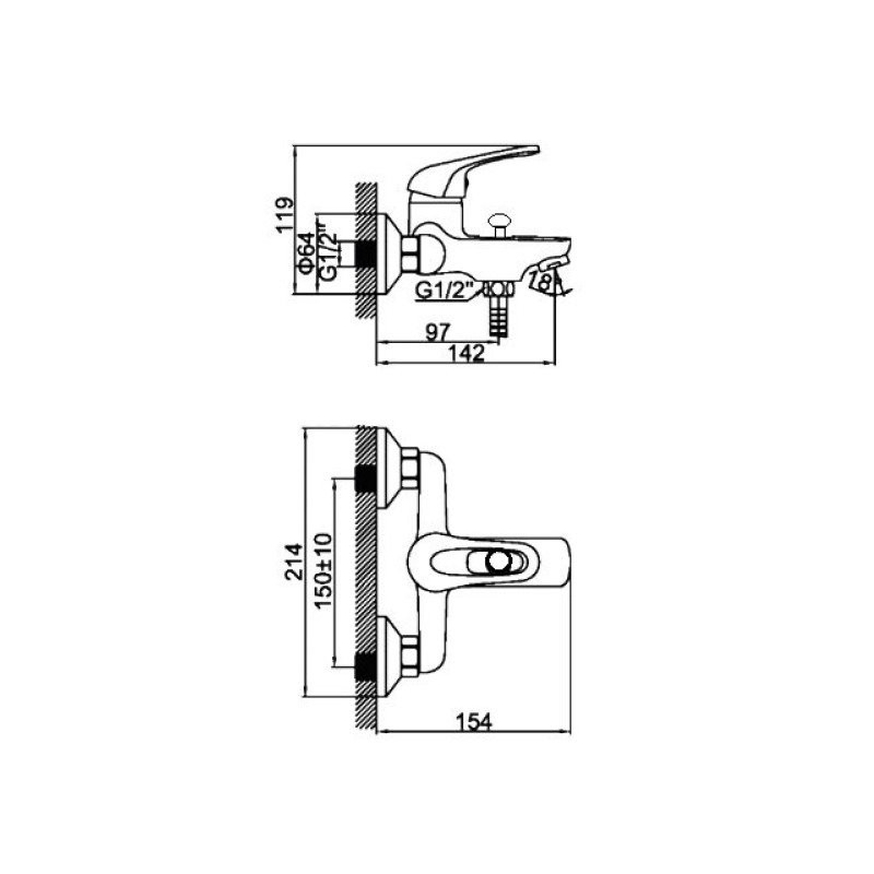 Комплектация: Смеситель, шланг, душевая лейка, держатель душевой лейки, эксцентрики, инструкция;