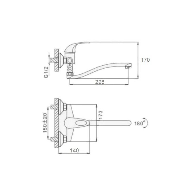 Смеситель для ванны D-Lin D140301, хром. Излив: традиционный, поворотный.