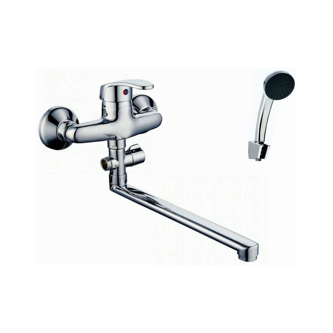 Комплектация: Смеситель, шланг, душевая лейка, держатель душевой лейки, эксцентрики, инструкция;