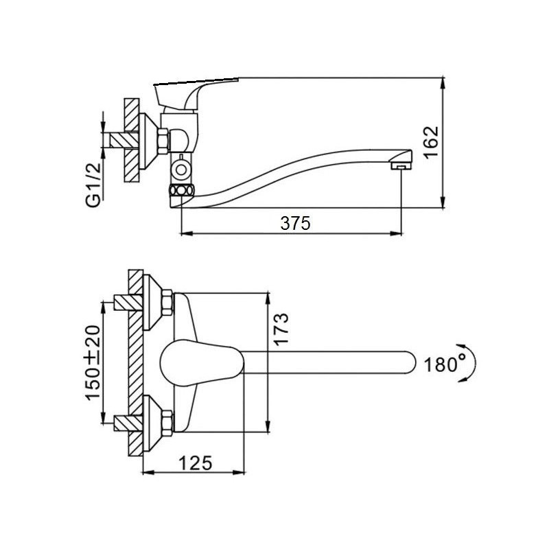 Комплектация: Смеситель, шланг, душевая лейка, держатель душевой лейки, эксцентрики, инструкция;