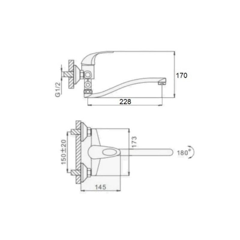 Смеситель для ванны D-Lin D140430, хром. Излив: традиционный, поворотный.