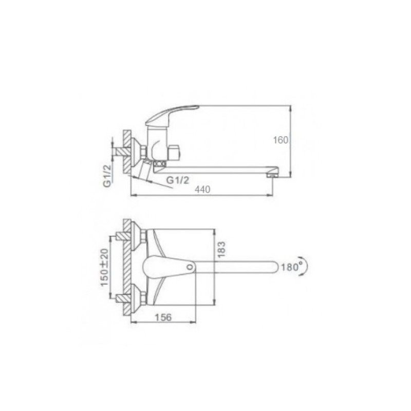 Комплектация: Смеситель, шланг, душевая лейка, держатель душевой лейки, эксцентрики, инструкция;