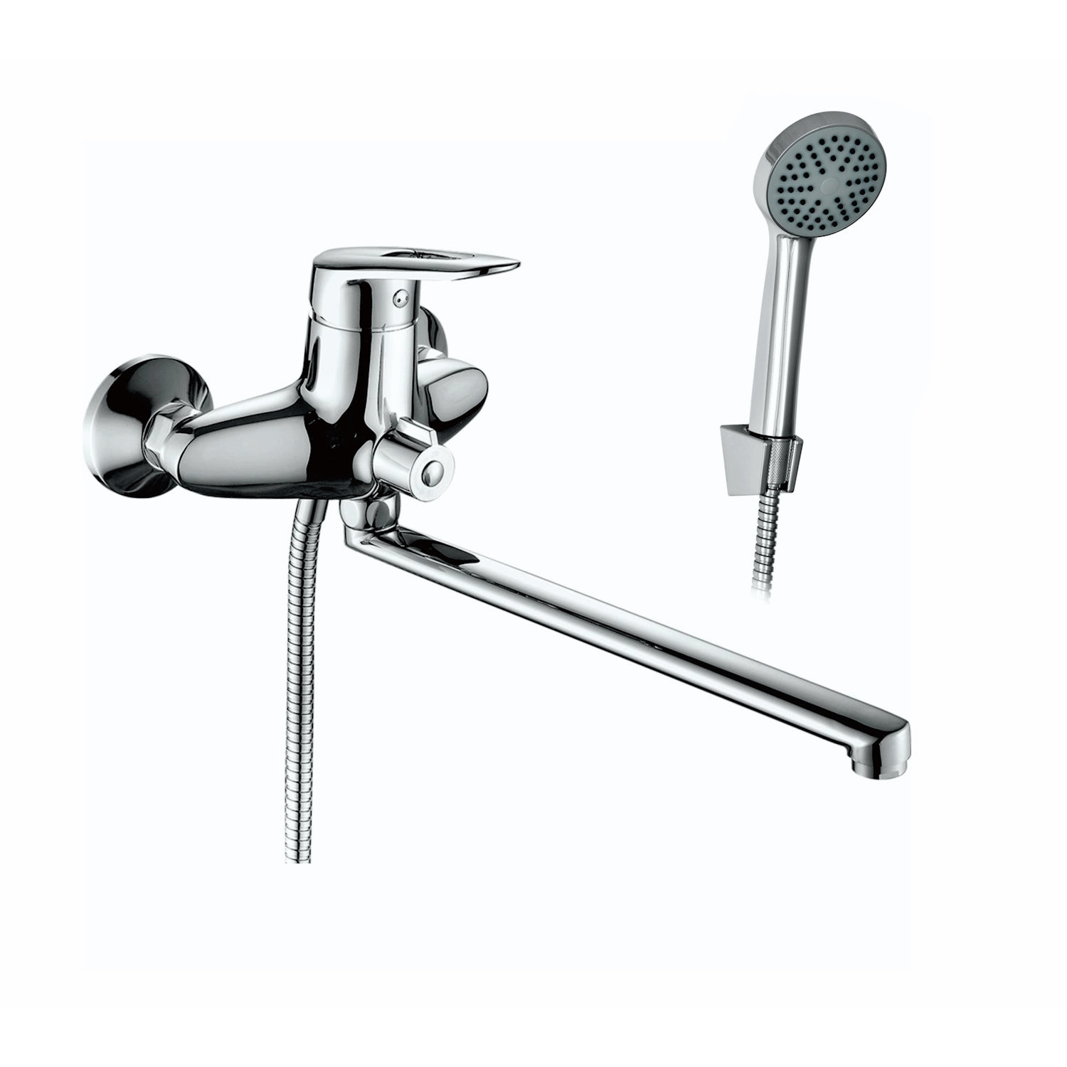 Комплектация: Смеситель, шланг, душевая лейка, держатель душевой лейки, эксцентрики, инструкция;