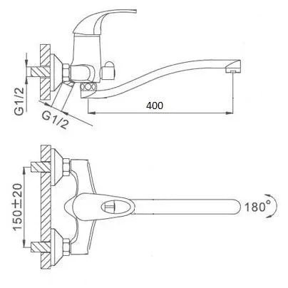 Смеситель для ванны D-Lin D146359, хром. Излив: традиционный, поворотный.