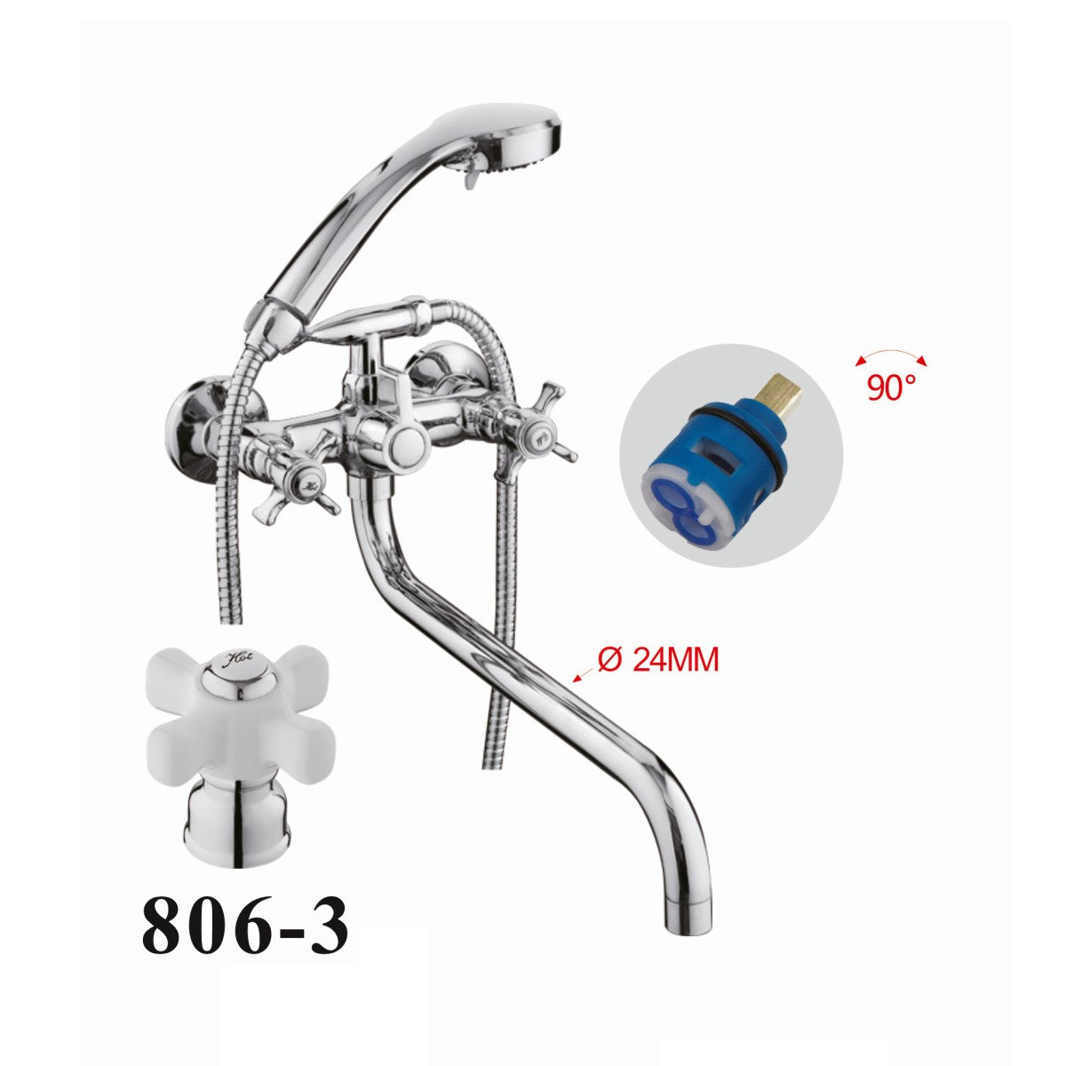 Смеситель для ванны D-Lin D146806-3, хром. Излив: традиционный, поворотный.