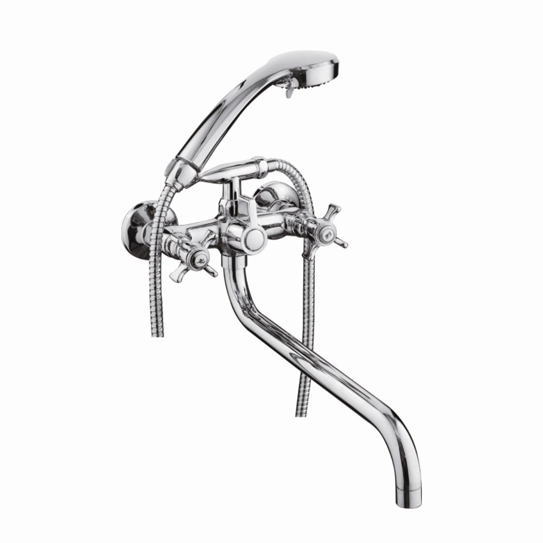 Комплектация: Смеситель, шланг, душевая лейка, эксцентрики, инструкция;