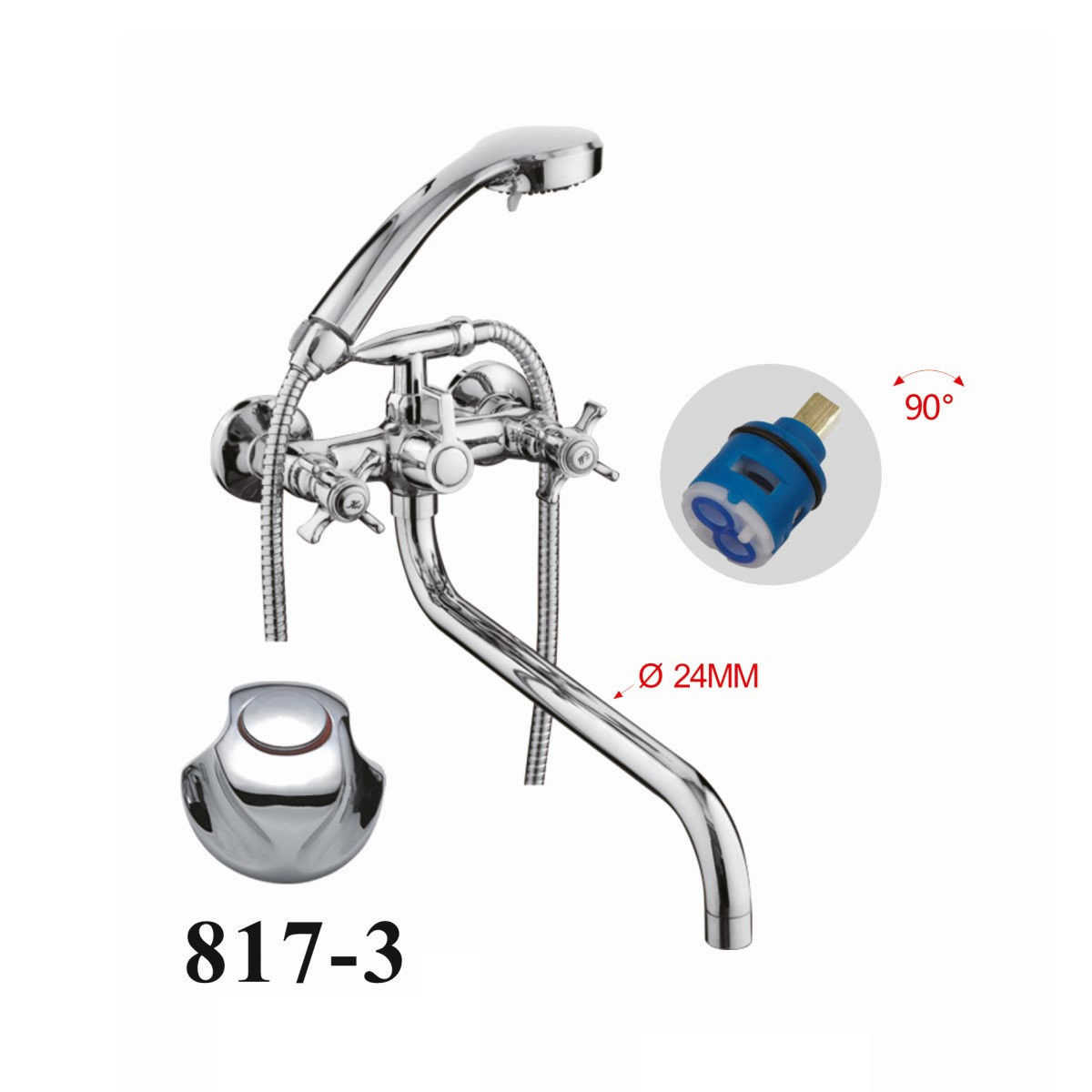 Смеситель для ванны D-Lin D146817-3, хром. Излив: традиционный, поворотный.