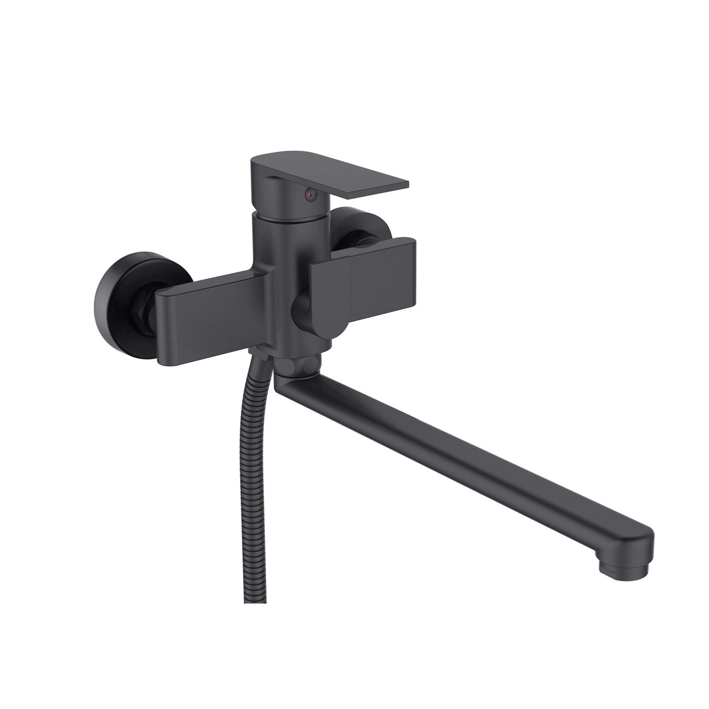 Комплектация: Смеситель, шланг, душевая лейка, держатель душевой лейки, эксцентрики, инструкция;